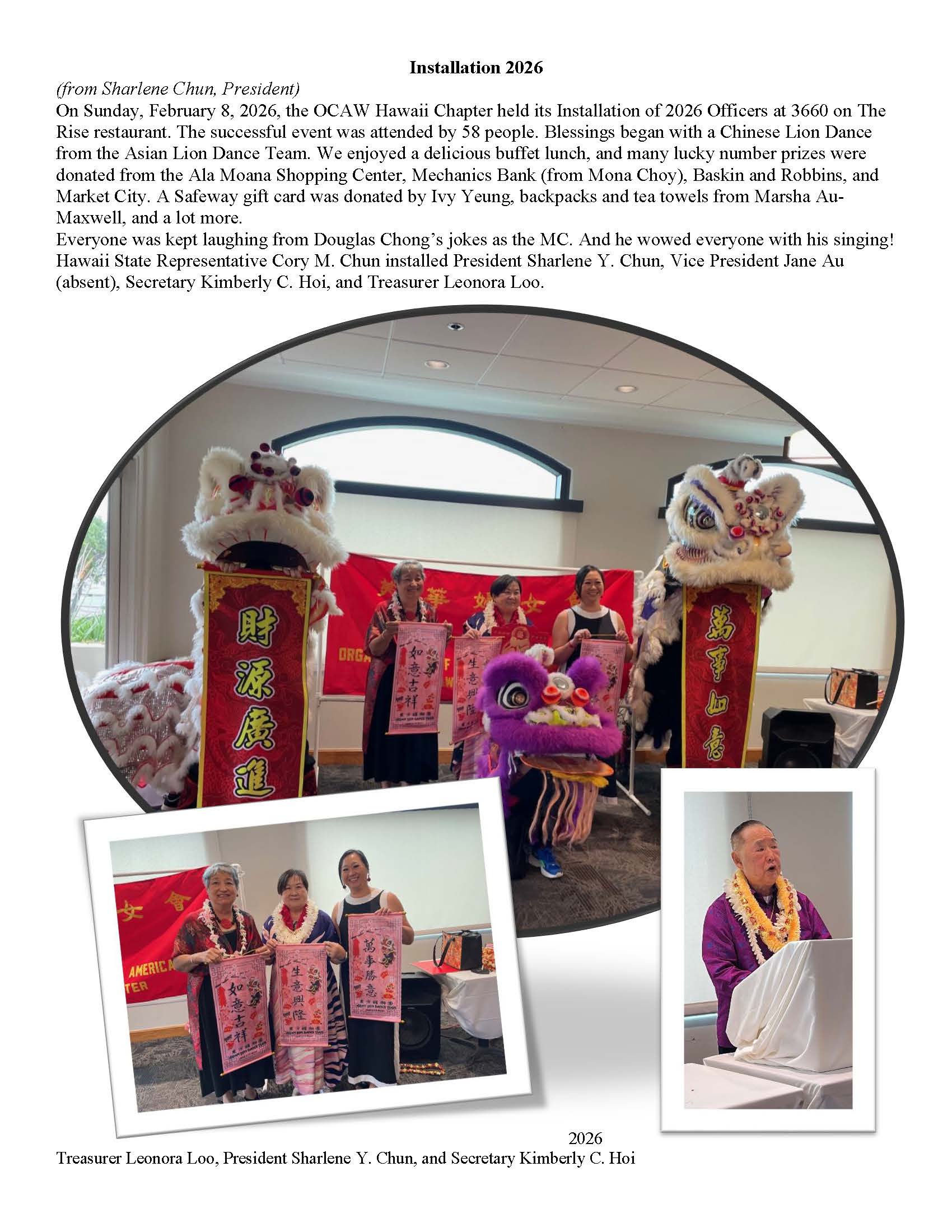 (At that time, OCAW had 26 charter members. Dr. Margaret Lee, who later became the first OCAW Hawaii Chapter President, was one of them.)