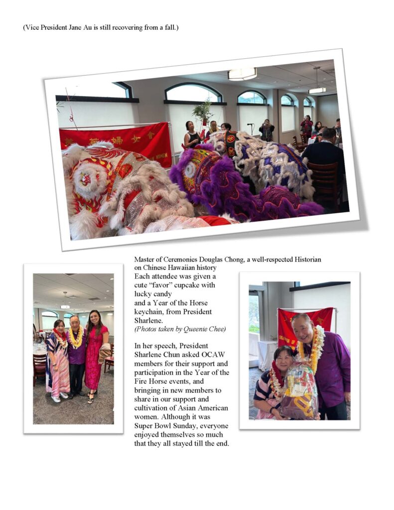 Anita Wong, who was the Associated Chinese University Women’s incoming president, was contacted by Julia and asked to assemble a group of influential Chinese American women to consider starting a chapter in Hawaii. Thirty-two ladies answered the call to this first meeting at the King Tsin Restaurant on King Street.