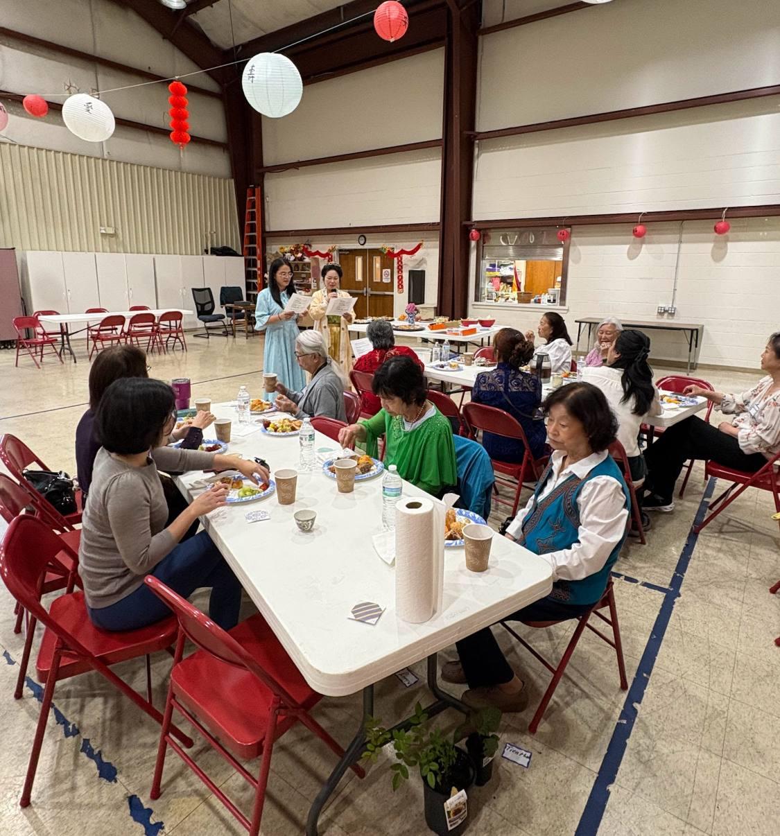 The event began at 12:30 p.m., welcoming community members for an afternoon of tea, conversation, and cultural celebration. Guests enjoyed a selection of Asian-style pastries, cakes, and fresh fruit while catching up with friends and discussing the organization’s upcoming activities. Attendees also brought plants from their own gardens to exchange, creating a lively and friendly atmosphere.