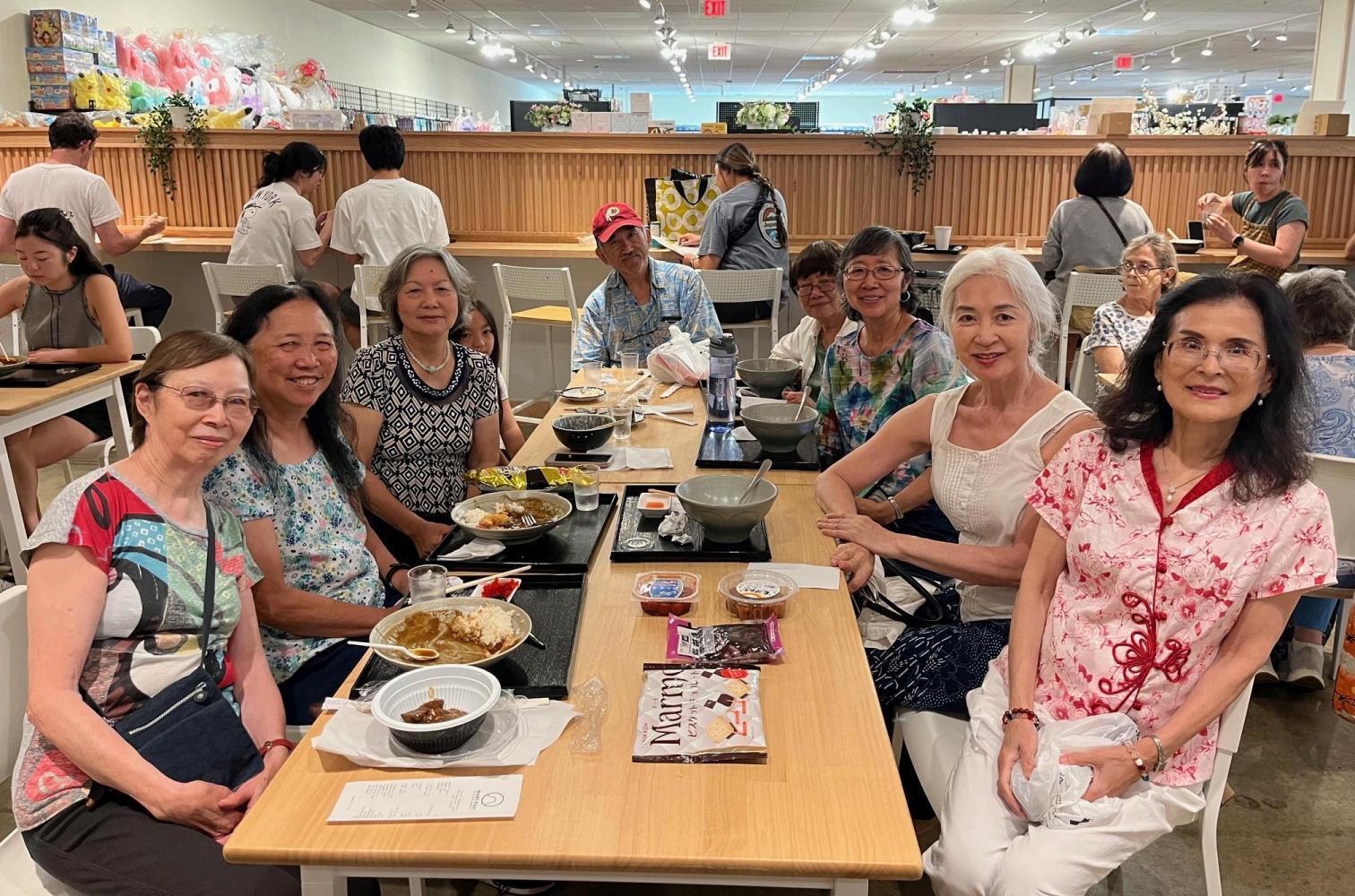 Thus, on Thursday, June 19, 2025, a group of OCAW-MD and OCAW-VA members met at 11 a.m. at the new, impressive Japanese market in Vienna, Virginia. Maria had the foresight to realize that with a decent-sized group as ours was, we might be able to arrange for a tour of the store. Store manager Mai Carriker was very gracious and obliged Maria’s request, making Noah, one of her staff members, available as our tour guide. In an organized, systematic fashion, Noah led us aisle by aisle and section by section through the store, explaining the various items that it had to offer, some of which were especially interesting. We appreciated his commentary. For instance, I did not realize that there is white miso and red miso. After leading us through the large quantities of food products, Noah showed us the wide variety of non-food items that the store had for sale. *So* many items throughout! Definitely a shopper’s delight! Once our tour was complete, we adjourned to the food court, where we pulled tables together and ordered entrees from the wide selection. During our tour, Maria had been filling up a shopping cart with lots of items, which I assumed was for future meals she had planned to prepare for her and Bill. However, at the end of our lunch, she spread out all of the packages on the table and insisted that we select an item/items to take home – which served as nice ‘souvenirs’ of our outing. Thank you, Maria!